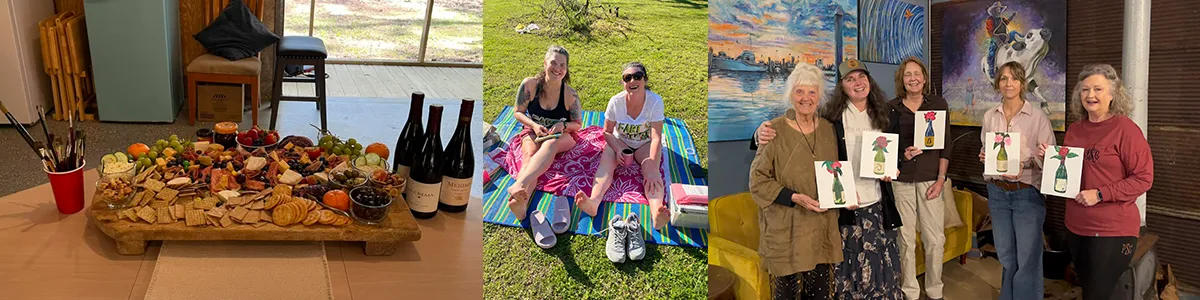 A full retreat with guided painting, lunch, drinks, connection time, and a true creative reset.